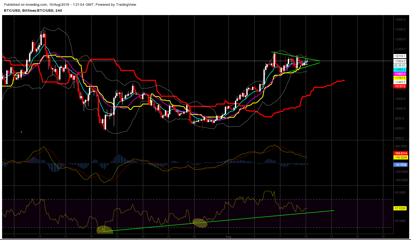 Chỉ báo RSI đã chạm trendline nên giá đồng thời đang ở mức 11k9 được hỗ trợ tốt để bật mạnh lên.