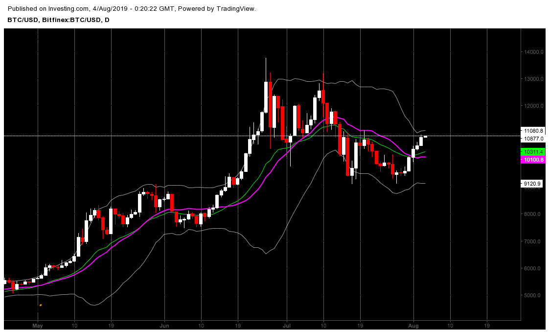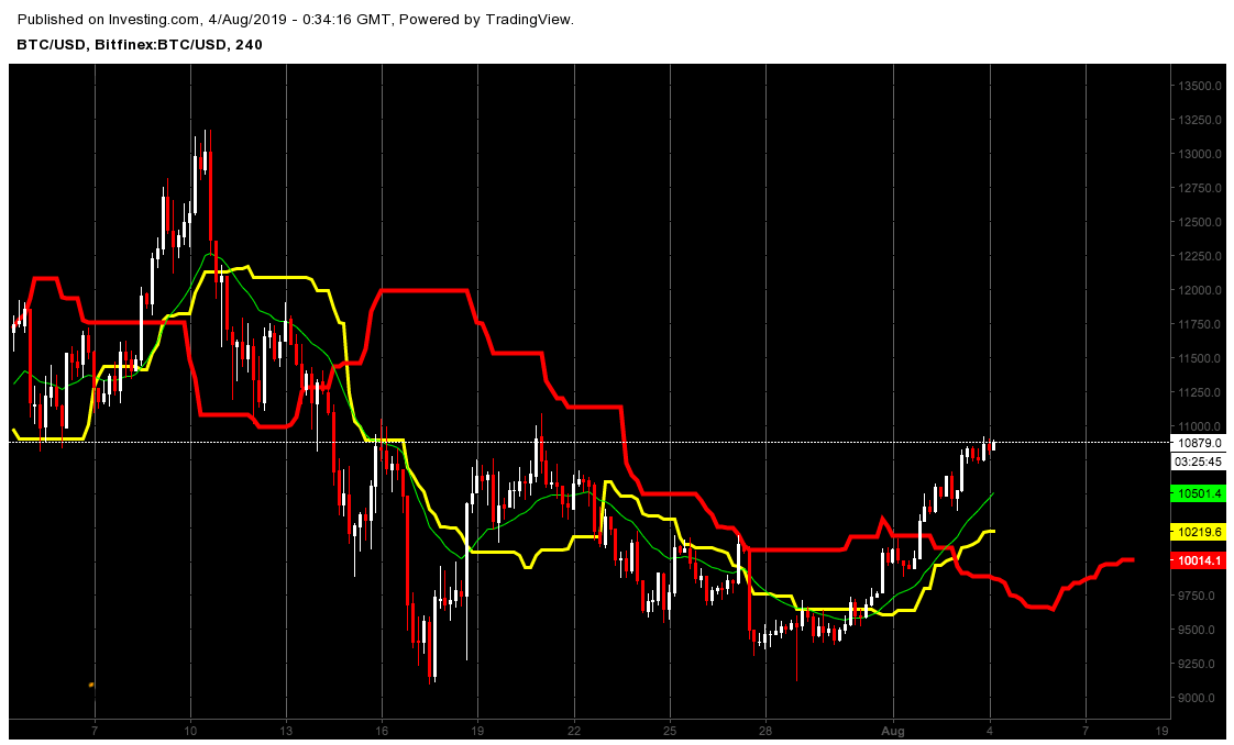 Với các tín tức tốt suốt tuần qua thì có lẽ giá btc sẽ khó có nhịp hồi nào đáng kể biểu hiện qua 5 phiên tăng liên tục suốt từ 30/7/2019. Lúc này giá btc đã chạm ngưỡng 10k8$ – đây cũng là mức quan trọng nhưng ae để ý trong quá khứ những đợt tăng mạnh của btc sau khi giảm 30-41% thì thường bứt phá sau 15-30 ngày là vượt đỉnh.